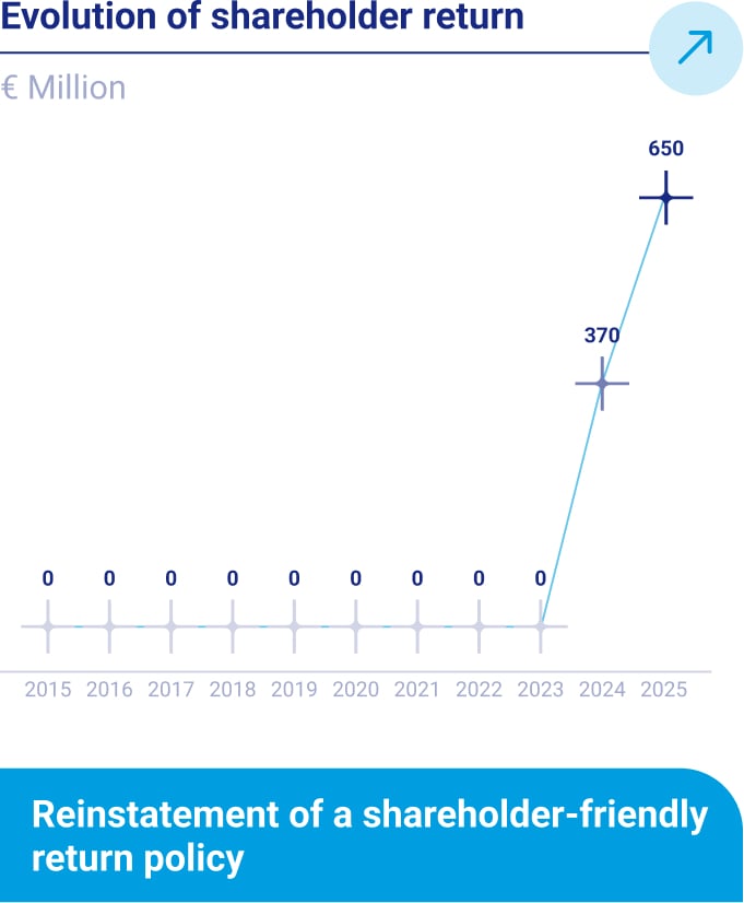 The dividend in 2025 marked the first return to shareholders in ten years and laid the foundations